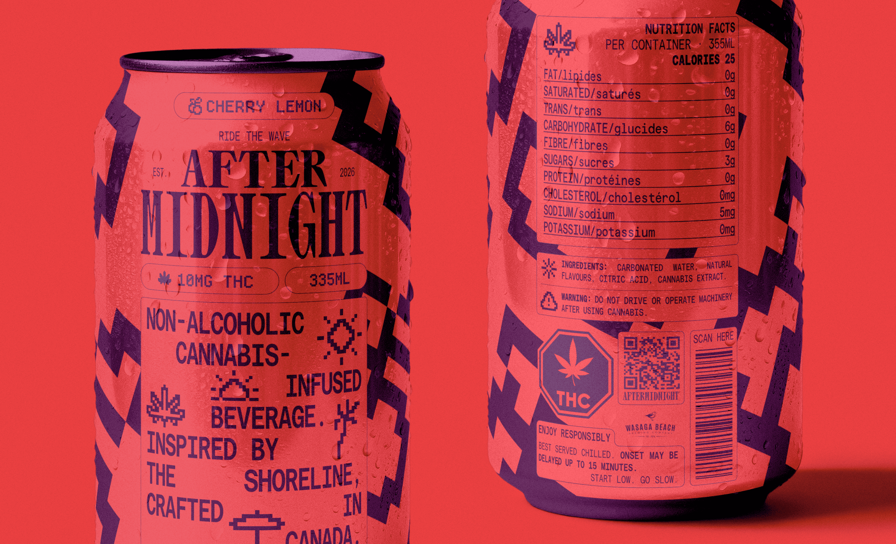 AFTERMIDNIGHT is a cannabis infused beverage sub-brand created for Wasaga Beach Brewing Company. The goal was to create a non-alcoholic drink line that combines their original coastal feel with a modern and experimental design style.