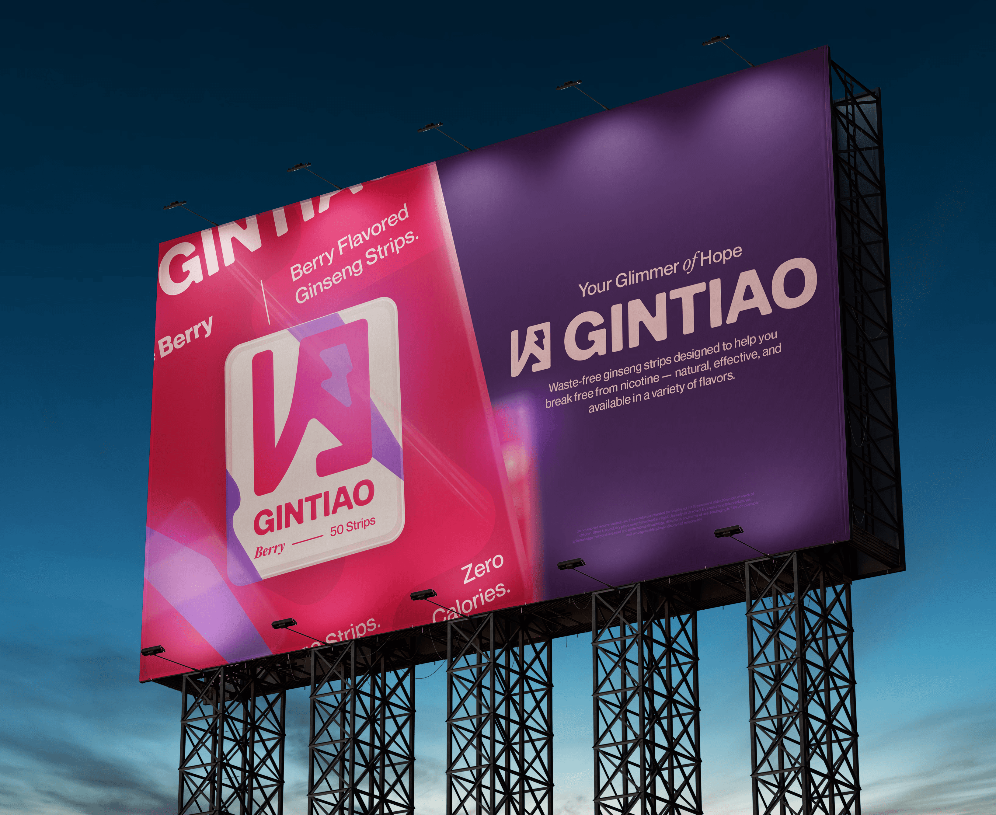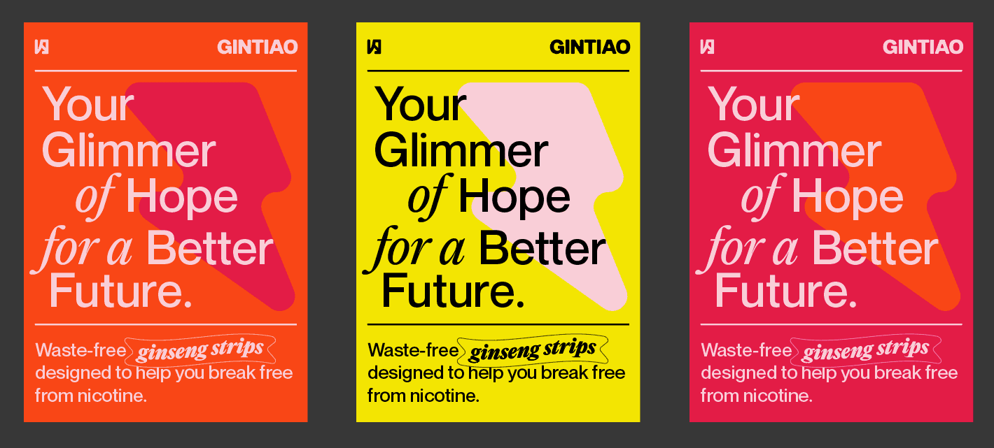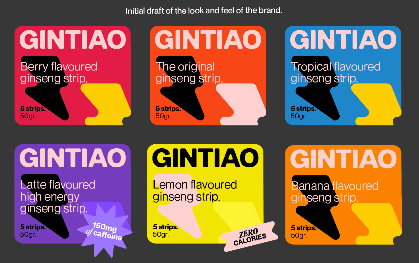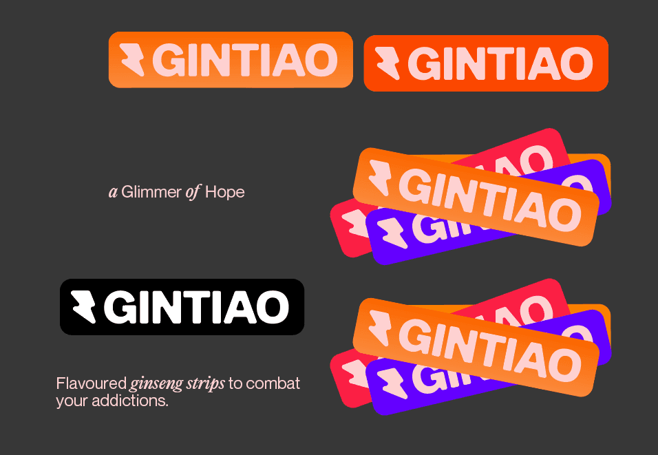 GINTIAO is a ginseng strip product developed through a semester-long branding and marketing project in my Graphic Design course. Our team worked together to plan the product concept, launch strategy, and visual identity.